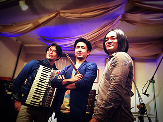 キレのある大渕のフィドル、メロディアスな秦のアコーディオン変幻自在の中村のギターに遊び心たっぷりな渡辺のパーカッションが絡み合いエッジの効いたグルーヴが生まれる。
